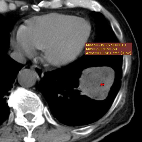 CT値も比較的低かったので、読影者は過誤腫と読影しています。
